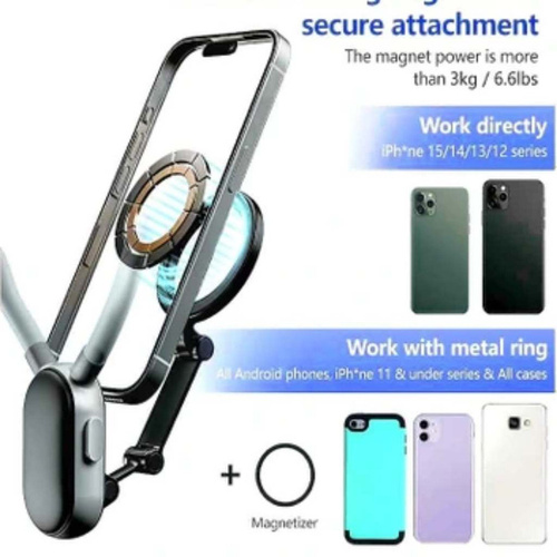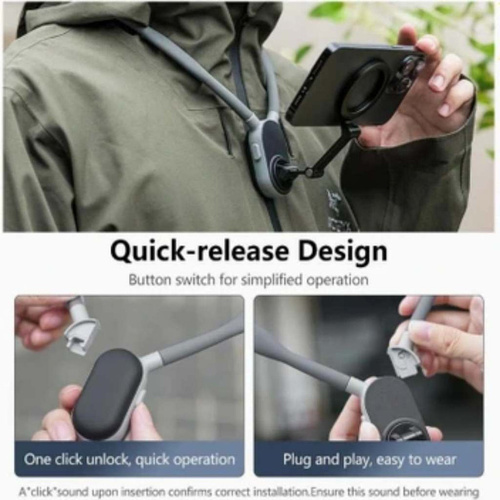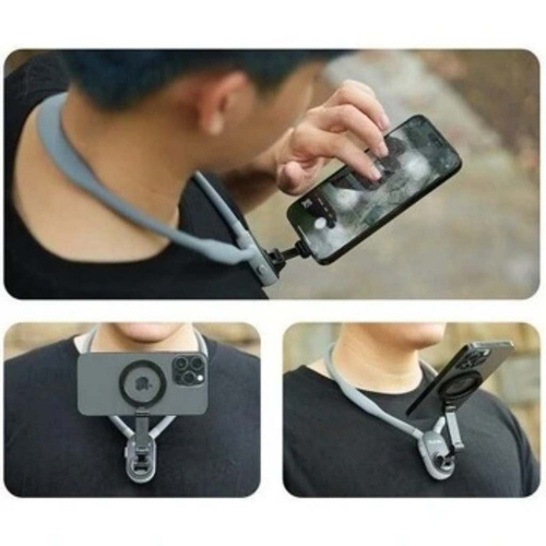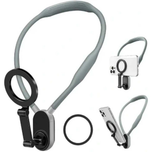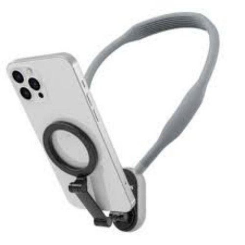 هولدر گردنی mnm-001-n1 ورژن جدید هولدرهای گردنی میباشد که تمام احتیاجات شما را برای گرفتن فیلم سلفی و یا تولید محتوا برطرف میسازد.بدنه از جنس سیلیکون فشرده میباشد که داخل آن فنر بسیار با کیفیت کار شده است.هنگام کار با این هولدر دستان شما آزاد میباشد و براحتی میتوانید مدیریت صحنه خوبی داشته باشید.هولدر یک حلقه مگنتی بسیار قوی دارو که نگهداری گوشی سنگین هم براحتی انجام میگردد.شما با خریداری یک قاب مگسیف دار و یا استفاده از حلقه آهنربای هولدر میتوانید از این وسیله استفاده لازم را ببرید