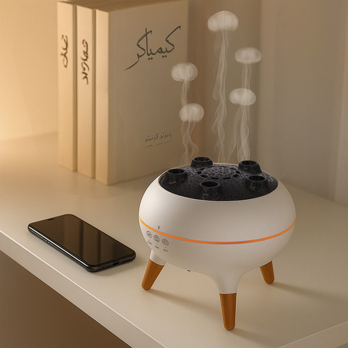 دستگاه بخور Jellyfish یک دستگاه 3 در 1 است؛ پخش کننده عطر، رطوبت ساز و هم یک چراغ شب خواب با قابلیت تغییر 7 رنگ است، این ترکیب آن را به یک گجت مناسب برای هر خانه، کافه و... تبدیل می کند. کاربر می تواند با کنترل از راه دور دستگاه را به دلخواه شخصی سازی کند. شما میتوانید با اضافه کردن چند قطره گلاب یا رایحههای طبیعی دیگر مثل اسطوخودوس، فضا را آرامش بخش کنید. دارای چراغ LED با تغییر 7 رنگ، و ظرفیت 250 میلیلیتر میباشد. دارای قابلیت خاموشی خودکار پس از 4 یا 8 ساعت میباشد، بنابراین میتوانید با خیال راحت از رایحههای دلپذیر در طول خواب یا کار لذت ببرید. دو حالت بخور اسپری و چتری دارد.پیشنهاد میکنیم برای افزایش طول عمر محصول از آب مقطر استفاده شود. این رایحهپاش ترکیبی از زیبایی، کارایی و آرامش را به فضای زندگی شما میآورد.