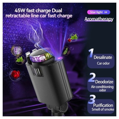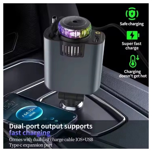 این دستگاه مناسب کاربران علاقهمند به فضای دلنشین درون خودرو است. با ترکیب شارژ سریع، نورپردازی ظریف و امکان پراکندن رایحه، همزمان چند نیاز را پوشش داده و ظاهر مدرن و کاربردی دارد. استفاده از پورت USB‑C تا 45 وات، امکان شارژ گوشیهای هوشمند، تبلت یا گجتهایی با توان متوسط را فراهم میکند.